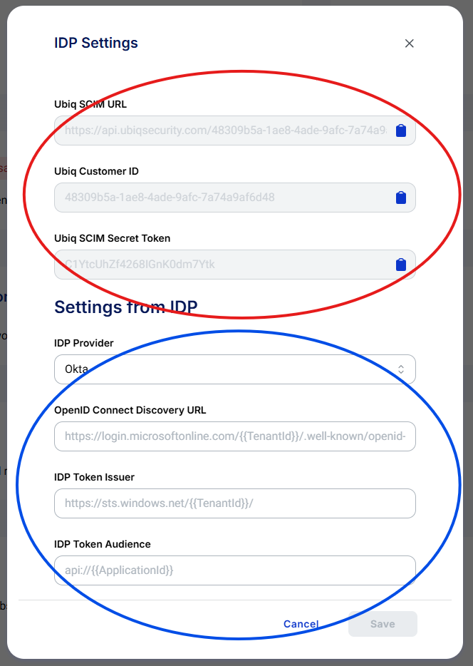 - The customer_id is from Ubiq SCIM URL in the IDP Settings window.